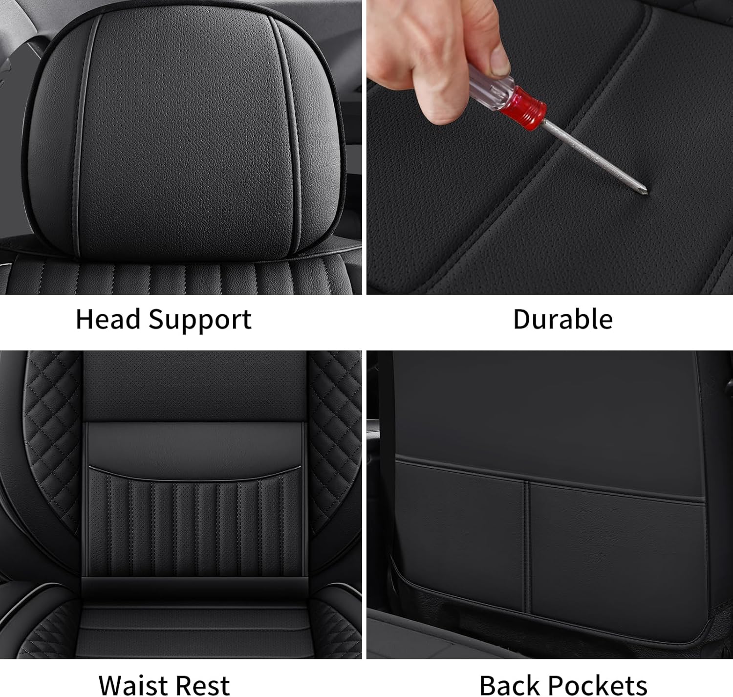 Customers find the car seat covers comfortable with a soft leather feel and good quality. The appearance receives positive feedback, with one customer noting it makes their vehicle look like new. The fit and installation experience are mixed – while some say they fit perfectly and are easy to install, others report issues with rear covers not sitting properly and unclear installation instructions.