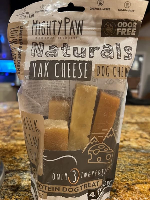 bsolutely love these Mighty Paw Yak Cheese Puffs—they’re the perfect treat for my power-chewer who hates strong-smelling snacks.🐕 What I Appreciate:No Funky Odor: Unlike traditional cheese chews, these are nearly scentless—my dog enjoys them without turning the house into a cheese factory.Durable & Long-Lasting: Tough texture keeps aggressive chewers engaged; they last long enough to be satisfying but aren’t rock-hard.Simple, Clean Ingredients: Made from yak cheese and a pinch of salt—no preservatives or fillers. Easy to feel good about.Scoops of Nutrition: High in protein and calcium—great for growing puppies and active pups needing extra nutrition.⚠️ A Couple Notes:Can Be Dense: The chew is dense at first bite—cut in half for smaller dogs or if your pup struggles getting started.Dental Vigilance: As it softens, the ends can break off—best handled under supervision to prevent swallowing large chunks.✅ Bottom Line:These Yak Cheese Puffs are a stellar alternative to smelly rawhide or chews—durable, healthy, and dog-approved. They’re a great match for heavy chewers who need flavor and staying power without stinky aftermath. Highly recommended!