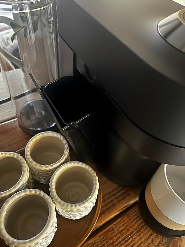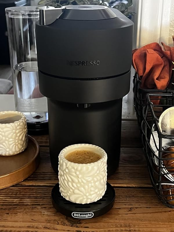 This is my review of the all black matte Nespresso vertuo popI have had many different styles and types of coffee today, didn’t know what a double shot of expresso was but now I do! Lol so now that I am very over caffeinated I am ready to review this thing! Let me start off by saying I own a Mocha Master and I still love it, as far as making a whole pot of coffee goes the mocha master is still the best HOWEVER the Nespresso has definitely earned its place next to my mocha master. This thing is compact! Which I appreciate because I don’t like having a bunch of machines and stuff cluttering my coffee bar. The color is beautiful I highly recommend going with the all matte black one it looks like black satin very pretty! The brew time is fast not sure what anyone would have complaints about it, I can get a cup of coffee depending on the size in 30sec-1min. Seems like a well built machine that should last, it did flash red on me the first use so I’m hoping that’s not foreshadowing that me and this machine are going to have ongoing issues lol but Ive made about 6 more cups with no issues. I love the way it disposes of its lil pods they just slide right into a tiny built in trashcan when you open the machine then you can just pull that out and dump! Now the taste, the taste is on point I’ve heard mixed reviews about Nespresso coffee and its taste but I am a coffee snob! I’m probably one of the only moms in the world that hates Starbucks because their coffee tastes like burnt beans unless you put mass amounts of sugar and crap in it to hide the taste, but a plain cup of black coffee from Starbucks is undrinkable to me so that being said I think Nespresso makes a pretty darn good cup of coffee (plain black coffee I didn’t add anything to it) lots of flavor and I do enjoy the lil bit of foam it makes on top of each cup! Even their double shot of espresso is good just by itself you don’t even need to mix it with anything if you don’t want to. So being the coffee snob that I am and not loving a lot of unnecessary machines all over the place the Nespresso can stay on the counter because it will be getting lots of use, I love it!