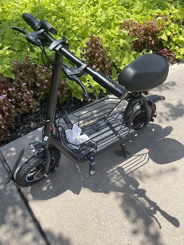 I absolutely love this electric scooter with a seat! The seat is super comfortable, and the scooter itself is powerful, offering a smooth and stable ride even on slightly bumpy roads. The battery life is impressive, lasting much longer than I expected, and the speed is perfect for getting around quickly and safely. Assembly was easy, and the overall design is sleek and modern. I highly recommend this scooter to anyone looking for a reliable, fun, and comfortable ride. Definitely worth the purchase!