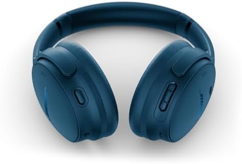 About this item A COOL NEW HUE: Listening feels anything but fleeting when you tune in with QuietComfort Headphones in Twilight Blue, a new Amazon Exclusive limited-edition color NOISE CANCELLING HEADPHONES: Effortlessly combines noise cancellation technology with passive features so you can shut off the outside world, quiet distractions, and take music beyond the beat COMFORTABLE HEADPHONES: Plush earcup cushions softly hug your ears, while a secure and comfortable padded band gently keeps your over ear headphones in place for those extra-long listening sessions 2 LISTENING MODES: These wireless Bluetooth headphones feature Quiet and Aware Modes that let you toggle between full noise cancelling or full awareness of your surroundings for seamless sound control HIGH-FIDELITY AUDIO/EQ CONTROL: Supercharge your favorite tracks with high-fidelity audio and Adjustable EQ that puts you in control of the bass, mid-range, and treble for unmatched bold sound ALL DAY BATTERY LIFE: Bose QuietComfort wireless headphones provide up to 24 hours of battery on a single charge, plus a 15-minute charge gives you up to 2.5 hours of additional play time WIRED HEADPHONES OPTION: Plug the included audio cable with in-line microphone into your Bose noise cancelling headphones to use them without a Bluetooth connection, or even when the battery is depleted
