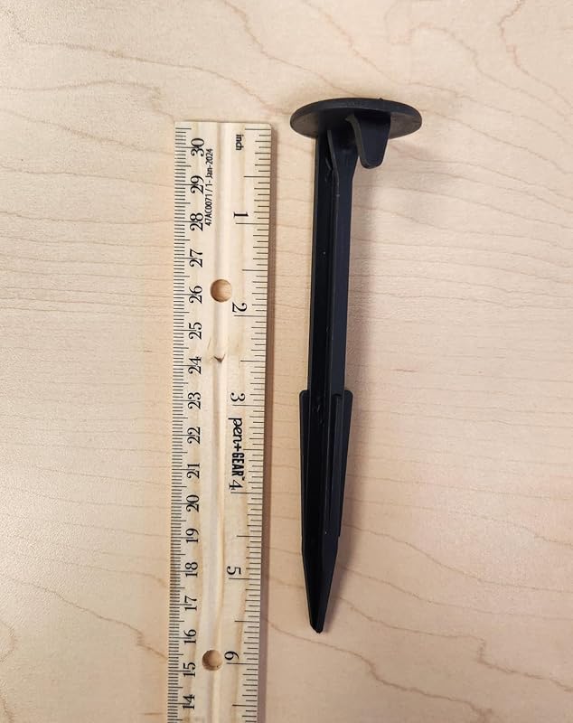 This set of ground stakes is a fantastic find, offering smart design and surprising durability for a variety of anchoring needs. While advertised as a set of 18, I was pleasantly surprised to receive 19 stakes, giving me an extra anchor right out of the box.These stakes are the ideal size for utility applications, measuring just over 5 ½ inches long. Every design element, from the cap to the shaft, appears optimized for performance and ease of use.The stakes incorporate several features that make them superior to flat or smooth alternatives:Textured Cap: Each stake features a round, sturdy cap measuring 1 ¼ inches in diameter. This cap is textured, a simple but effective detail that keeps your hammer or driving tool from slipping off the stake head during installation.Integrated Notch: A crucial feature is the ¼ inch-long notch located directly beneath the cap. This specifically engineered gap is perfect for securely hooking over items—whether it’s rope, elastic bands, or the edges of landscaping fabric—providing a firm hold that prevents slippage.T-Shaped Shaft: The main body of the stake utilizes a T-shape rather than a simple rounded profile. This structural choice significantly improves stability once the stake is in the ground, minimizing side-to-side movement and ensuring a strong anchor.I found the stakes to strike an excellent balance between rigidity and necessary flexibility. They are rigid enough to be pounded into typical soil quite easily, making the installation process fast and painless.Regarding durability, they are tough. While there is a slight amount of flex if you try installing them into exceptionally hard or rocky ground, you would truly have to force them into super-hard materials to get them to bend in half or break. For most applications, their construction holds up wonderfully.The chosen length is perfect. At 5 ½ inches, they go far enough down to provide a secure and reliable anchor without being so long that it becomes an exhausting chore to drive all of them completely into the ground.The utility of these stakes extends far beyond a single application:Camping & Recreation: They work perfectly as replacement or backup tent stakes.Yard Anchor: They are ideal for securing large yard inflatables (as commonly shown in product listings), holding them steady against winds.Landscaping: The notch works efficiently to hold down landscaping fabric, ensuring it stays taut and secure.Summer Fun: They are great for anchoring down items like slip-n-slides, water toys, or temporary shade structures.The reliability of the anchor, combined with the effective holding notch, makes these stakes highly adaptable for any project where items need to be secured close to the ground.These plastic ground stakes are well-designed, durable, and highly versatile. Their optimized length and smart features—specifically the textured cap and the effective holding notch—make them a superior choice for anchoring needs around the house, yard, or campsite. Given their quality and usefulness for a wide array of projects, I plan to keep a generous supply of these stakes on hand.