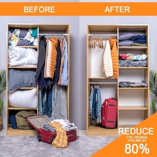 I am so impressed with this vacuum storage bag set! I purchased it to help organize and store our seasonal clothes, extra bedding, and bulky comforters—and it exceeded all my expectations. The variety of sizes (jumbo, large, medium, small, and roll-up) is perfect for everything from winter coats to pillows.The electric pump works quickly and is super easy to use—way more convenient than the manual pumps I’ve tried in the past. It vacuum-sealed the bags tightly in just seconds, saving so much space in our closet. I was also amazed at how sturdy the bags are; no leaks or reinflation at all even after weeks of use.If you’re looking for an efficient way to declutter or pack for travel, this is a must-have. I’ll definitely be recommending it to friends and buying another set soon. Great quality and value!