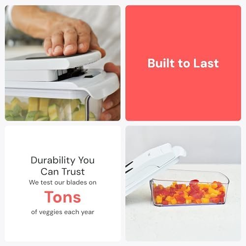 This vegetable chopper has been a life saver. I originally got this to meal prep but I now use this anytime I need to dice anything. My kitchen knife and cutting board have basically been retired because it’s so good. I’ve used this 1-2 times a week for the last 2 years and it has withstood the wear and tear.There is always a consistent cut and it has two cut sizes to choose from which is really nice. The blades have stayed sharp and it’s really easy to disassemble and clean. It came with a little scraping tool to use when cleaning and that has also been helpful.The size of this is what I love the most though. It is compact and fits in my cabinet without taking up too much space.Overall I love this chopper so much and I can’t recommend it enough. If anything ever goes wrong with it I won’t hesitate to buy another because it has saved me so much time when making meals.