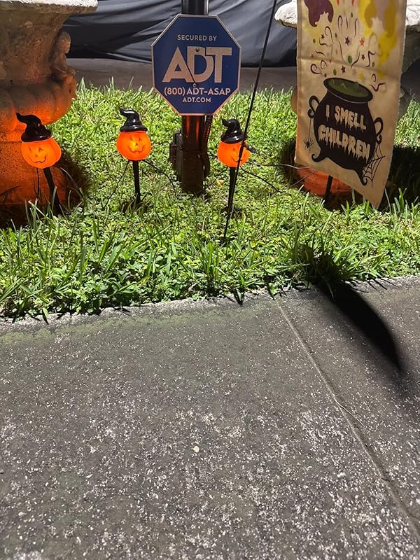 I love these pumpkin lights. Easy to assemble, then stake into the ground for a BRIGHT lighted effect. Plenty of cord and distance between lights to easily 6′ of pathway. They are a hit in my yard and are front and center of my Halloween decorations.