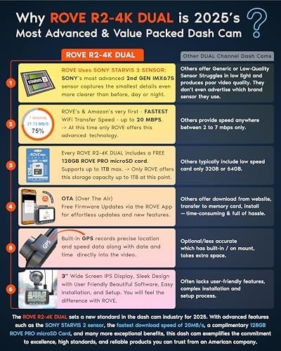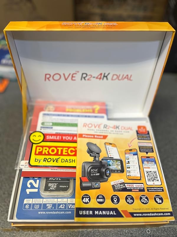 I recently purchased the ROVE R2-4K DUAL Dash Cam from Amazon, and I couldn’t be happier with my choice. As someone who drives long hours for work, I wanted a reliable dual-camera system to capture both front and rear views, and this one exceeded my expectations in every way. The package arrived quickly, complete with a free 128GB microSD card, which was a fantastic bonus—no need to buy extras right away. The build quality feels premium, with a sleek 3” IPS screen that’s bright and easy to navigate, even in direct sunlight.Installation was a breeze. The suction cup mount stuck firmly to my windshield, and the adhesive option for the rear camera was straightforward to set up on my sedan’s back window. The included cable clips and trim tool made hiding the wires professional-looking, taking me under 30 minutes total. Once powered up via the dual USB car charger, the dash cam booted instantly and started recording seamlessly.The video quality is outstanding. The front camera records in stunning 4K 2160P with the STARVIS 2 sensor, delivering crystal-clear footage day and night. Details like license plates and road signs are sharp, even at higher speeds, thanks to the 150° wide-angle lens and HDR technology. The rear 1080P camera provides solid coverage with a 140° view, capturing everything behind me without distortion. Low-light performance is impressive—super night vision handles dimly lit streets beautifully, reducing glare and enhancing visibility.I love the 5G WiFi connectivity; downloads hit up to 20MB/s through the intuitive ROVE app on my iPhone. Viewing live feeds, adjusting settings, and transferring videos is effortless—no lag or complications. Built-in GPS logs speed and routes accurately, embedding data into videos for undeniable evidence if needed. The 24H parking mode is a game-changer, with options for time-lapse, motion detection, and collision sensing via the G-sensor. It auto-locks important clips and has saved me peace of mind during overnight parking.Other perks include loop recording, voice guidance, and a supercapacitor that withstands extreme temperatures without issues. It supports up to 1TB storage, and OTA updates keep it future-proof. Overall, this dash cam offers incredible value—reliable, feature-packed, and user-friendly. If you’re seeking top-tier protection on the road, grab the ROVE R2-4K DUAL from Amazon. It’s a 5-star investment!