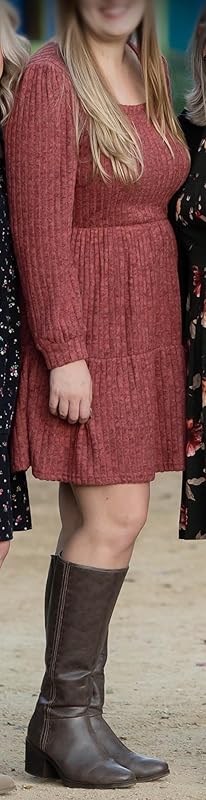 I love this dress! I got it for family photos and it is very pretty. Fits well – Flattering and forgiving for different body types. It’s a soft material and it’s comfortable to wear. Perfect for fall weather. And the color is great too! Looks different in different lighting.The only sad thing is it’s not as soft after you wash it the first time. Still, seems like good quality material for the price.