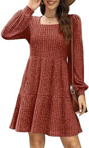 Sampeel Fall Dresses for women 2025, Long Sleeve Square Neck Babydoll Dress