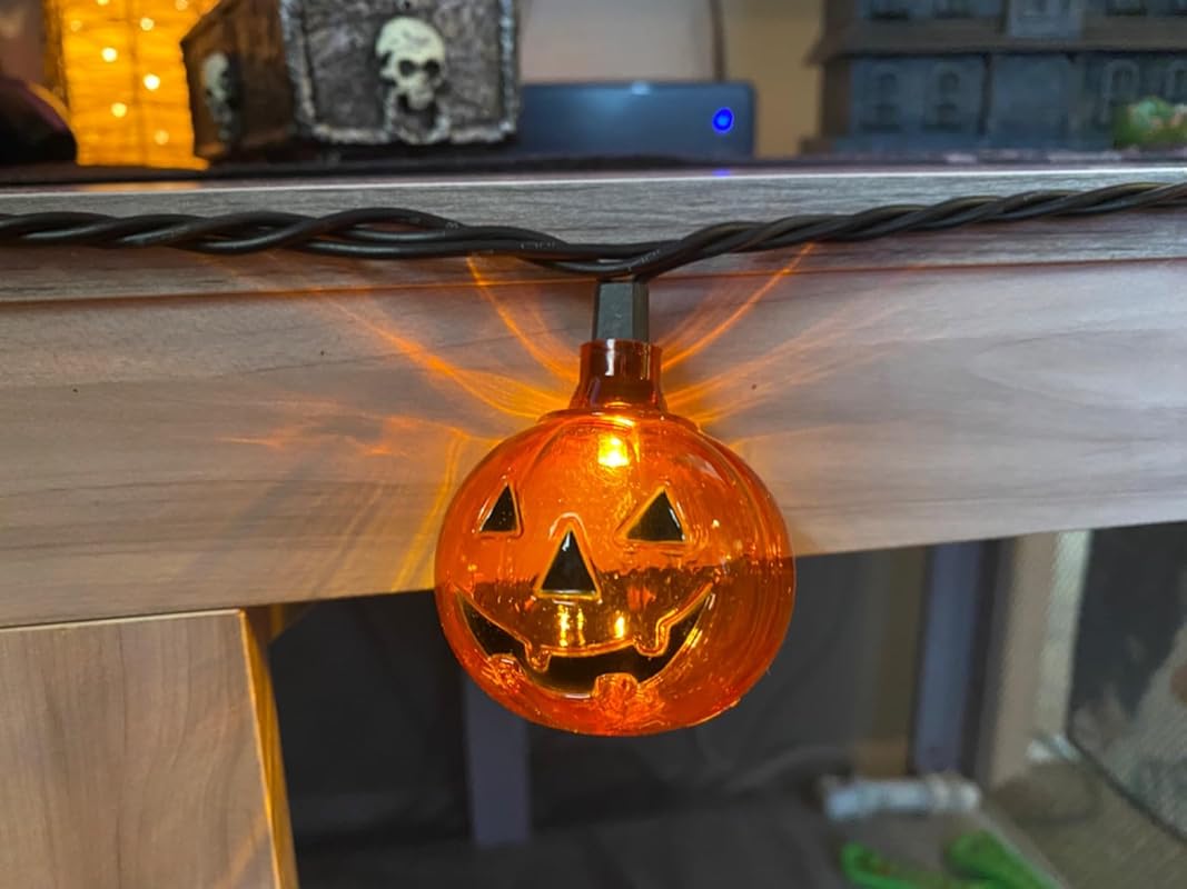 Cute little illuminated pumpkin lights that made my Halloween decor just so perfect. It is around my built in shelving in my living for all to admire and enjoy during Halloween. My 3 year old grandson really liked them as well. Highly recommend, much less expensive than my local shop.