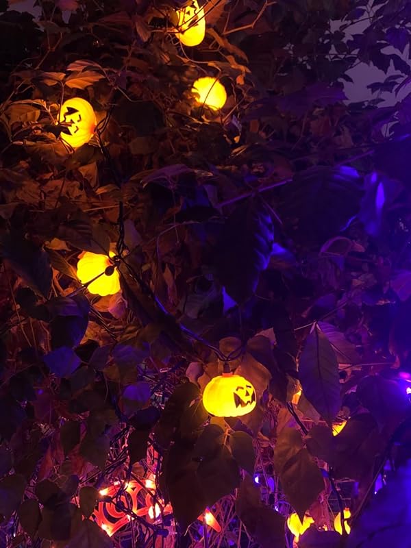 About this item Halloween Pumpkin String Lights: 8.5Ft Halloween lights string consist of 10 round pumpkin lights, and we provide you with 2 extra replacement bulbs. Halloween lights indoor can be easily hung on the roofline, window, wall, door or anywhere you want to place it. Decorating with cute pumpkin light will bring a mysterious festive atmosphere to your Halloween End-to-end Connection: Male plug and female plug or male plug and male plug connection. The halloween window lights is 8.5feet in total length, 24” lead with male plug, 6” lead with female plug, 8” spacing between Bulbs.The whole indoor light string is 0.7W(0.07W per Bulb), each set comes with a male plug and a female plug, you can easily connect the 308 strands end to end, reaching a length of 2618 feet to cover a large area. (The total light string cannot exceed 216 watts) Halloween String Lights Plug-in: Plug-in Halloween window string lights are UL listed for indoor and outdoor use. Halloween lights outdoor is Plug-in Corded Electric string lights, electric plug in outdoor halloween decorative string lights either with a built in spare fuse(Use only 125V 3A Max) for easy replacement Energy-Saving Decorative String Lights: This Halloween decorative lights does not require the use of batteries. It lights up when plugged in and is more energy efficient than battery powered string lights Halloween Decorations: The Pumpkin plug-in string lights can be wrapped around the tree or anywhere you like, lighting up your garden, patio, lawn, porch, gate, yard, Pumpkin porch string lights for Halloween Co-splay parties ideas, creates “Halloween Festival Atmosphere”