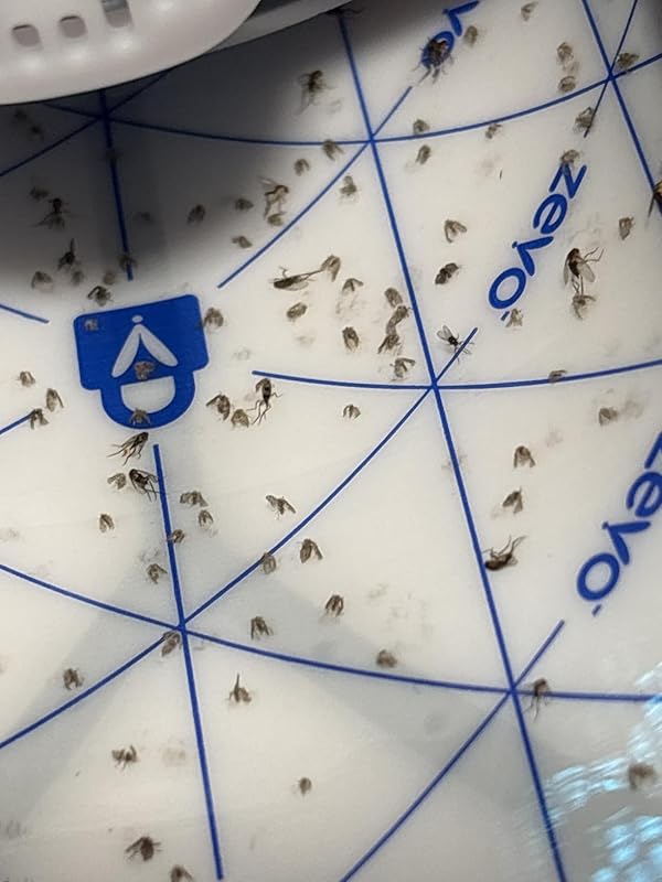 I recently tried the Zevo Flying Insect Trap and overall I’m impressed. Setup was super easy—just plug it in and insert the cartridge, and it starts working right away. The design is sleek and doesn’t take up much space, which makes it perfect for kitchens or living rooms without looking out of place.In terms of performance, it definitely works for gnats, fruit flies, and small house flies. I noticed a big reduction after a couple of days, especially around my trash bin and near indoor plants. The light is subtle and not too bright at night, so it doesn’t disturb sleep if you keep it in a bedroom.The refill cartridges last about 15–20 days depending on how many insects are around. They’re a little pricey if you need to replace them often, but the convenience and cleanliness make it worth it.Overall, I’d recommend it if you’re dealing with indoor flying pests and want a low-maintenance, non-toxic solution.