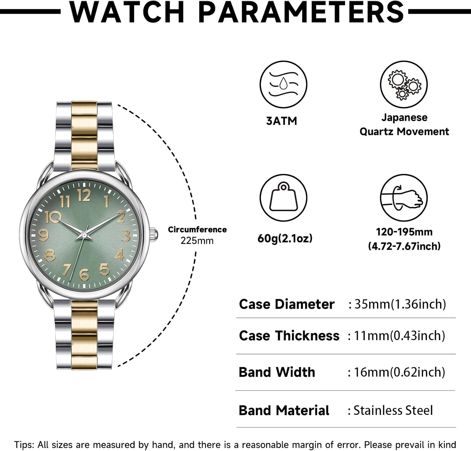 Bisley 35MM Women Watch Stainless Steel Bracelet with Magnetic Clasp Easy to Adjust Wrist Size Without Tool Arabic Numbers Easy to Read Watch