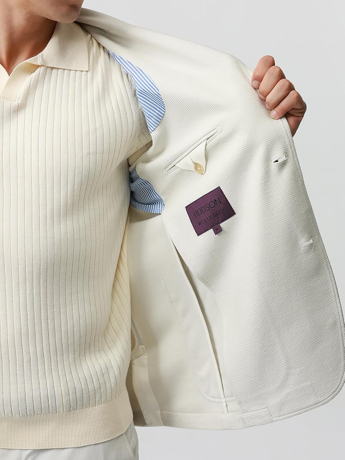 Blazer for Men Cotton Blend Sport Coat Knit Casual Jacket Half Lining Two Buttons Notch Lapel Double Vent