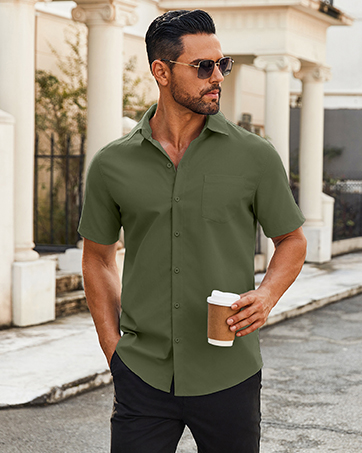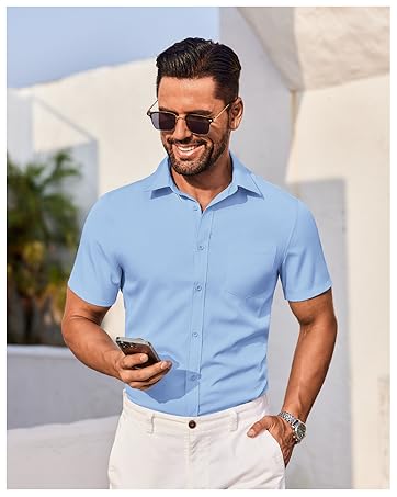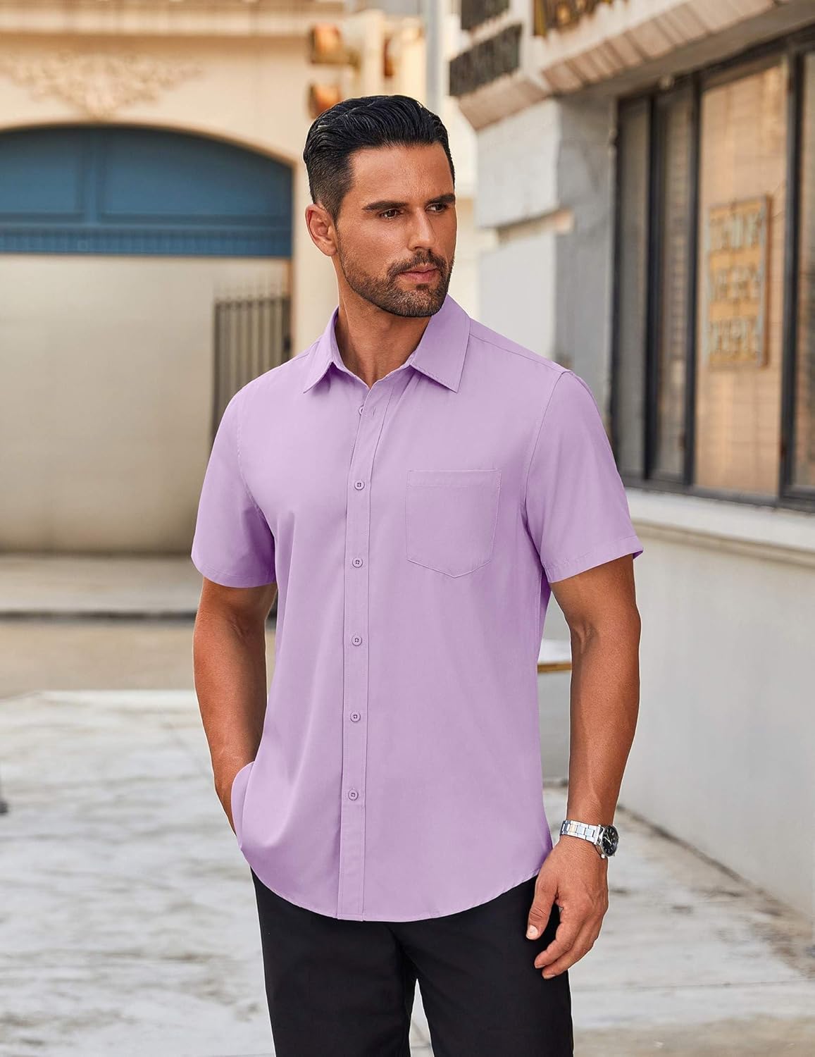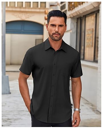 COOFANDY Men’s Short Sleeve Button Down Shirts Casual Dress Shirts for Men Untucked Shirt with Pocket