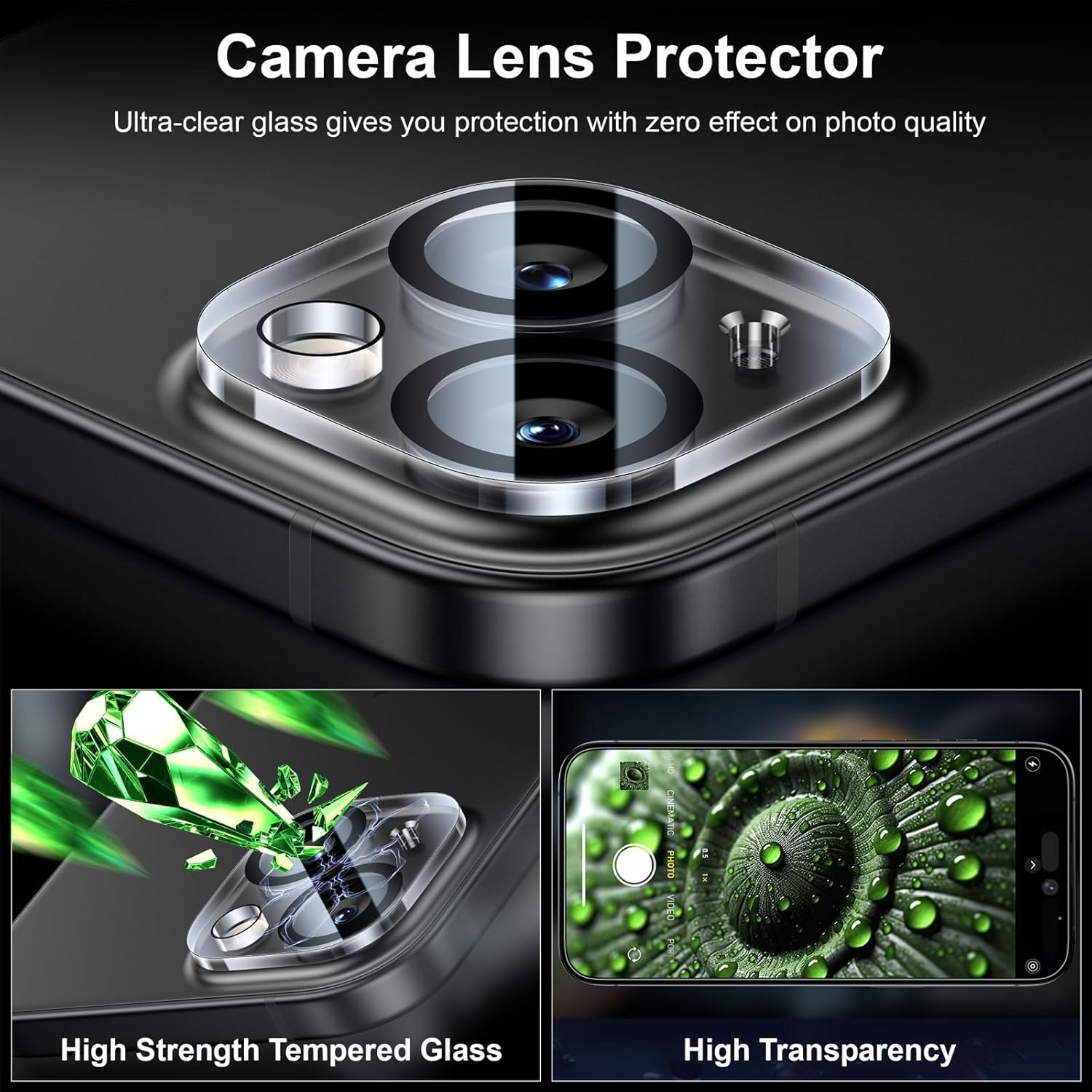 [Professional Design & Extraordinary Protection] Esanik tempered glass is made of 9H hardness and has further than 2.5D round edge to protect your iPhone screen from scratches, daily wear and drops. The camera lens screen protector effectively protects the raised camera cluster and will not affect the shot image quality.