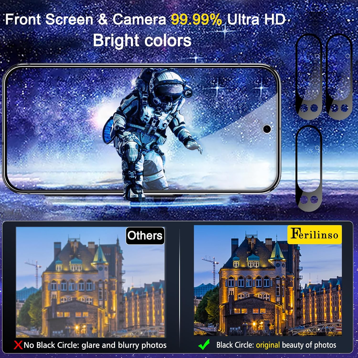Ferilinso Full Coverage 3 Pack Screen Protector for Google Pixel 9 Pro [Phone Case Friendly], 3 Pack Tempered Glass Camera Lens Protector Accessories [Auto- Dusting & Adhesive]