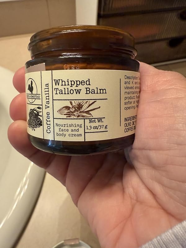 I’ve tried many natural balms, but this one from Hearth and Homestead is next level. The texture is like whipped frosting, light, fluffy, and melts beautifully into the skin like butter. The Coffee Vanilla scent is warm, cozy, and subtle. Honestly, it’s comforting in every way.I use it mostly on my face and hands, especially at night or after a hot shower. Even though it’s tallow-based, it absorbs faster than I expected, no greasy residue, just deep nourishment. I wake up with soft, glowy skin, even in Seattle’s dry winter air.The 1.3 oz jar is small but mighty, perfect for bedside, travel, or your purse. I also love that it’s handmade with infused olive oil. You can feel the care in every little detail.I’m already planning to try other scents, but Coffee Vanilla has my heart. This balm is staying in my routine for good!