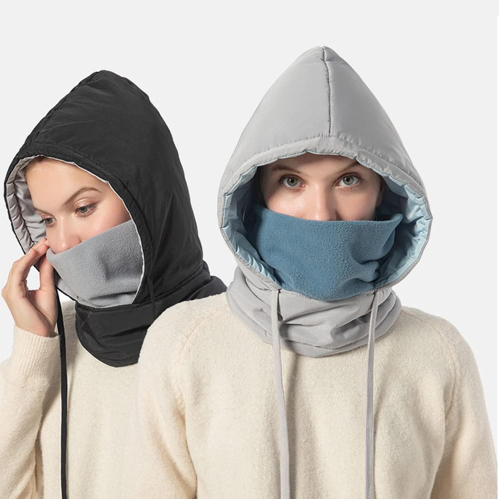 Topwon Winter Warm Hooded Scarf Hat for Women Cotton Balaclava Fleece Face Cover Drawstring for Outdoor Sports Activity